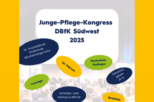 Am 26. Februar ist es wieder soweit: Der Junge-Pflege-Kongress des DBfK Südwest findet statt und zwar zum 20. Mal. Auf dem Programm stehen Impulsvorträge, Diskussionen und Sessions und natürlich gibt es die Gelegenheit, Auszubildende aus anderen Einrichtungen kennenzulernen.